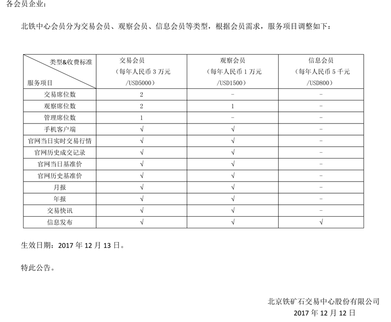 关于发布《北京铁矿石交易中心铁矿石现货信息发布实施办法(试行)》的公告